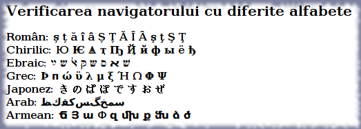 Dacă nu puteţi vedea corect toate literele, înseamnă că utilizaţi un navigator depăşit